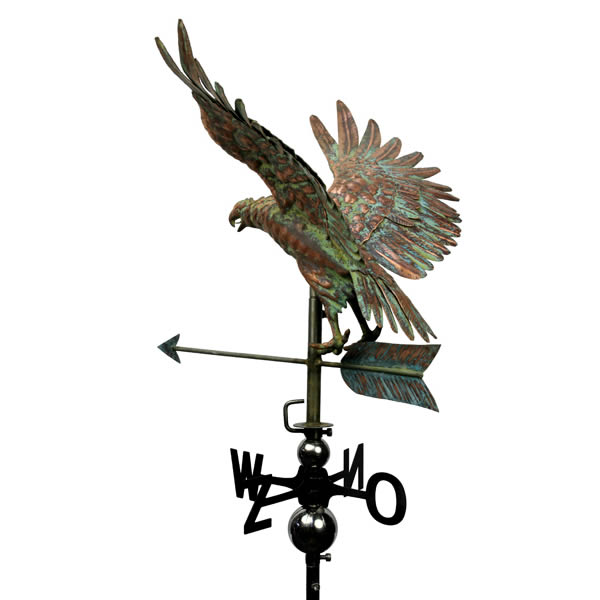 Deze schitterende handgemaakte Adelaar windwijzer van koper wordt geleverd inclusief windroos, staaf en bollen.