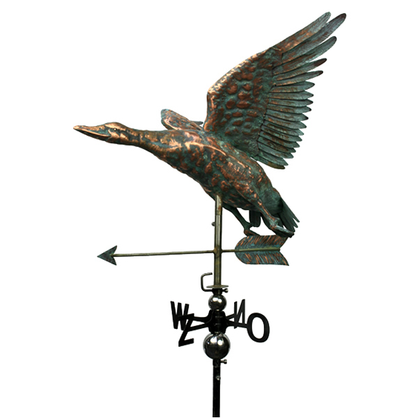 Deze schitterende handgemaakte wilde eend windwijzer van koper wordt geleverd inclusief windroos, staaf en bollen.