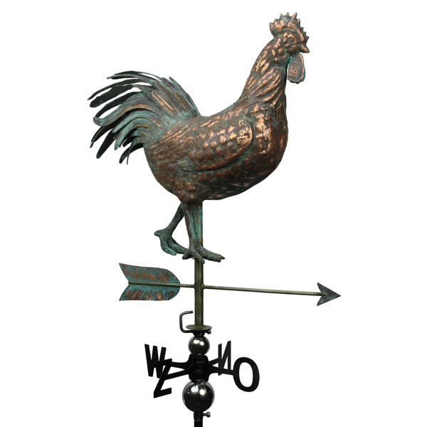 Deze schitterende handgemaakte Haan windwijzer van koper wordt geleverd inclusief windroos, staaf en bollen.