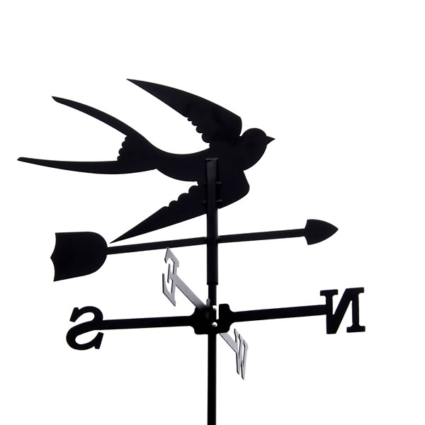 Deze windwijzer Zwaluw uit de serie Deco-design M windwijzer is gemaakt van plaatstaal en voorzien van een zwarte poedercoating voor bescherming tegen weersinvloeden.